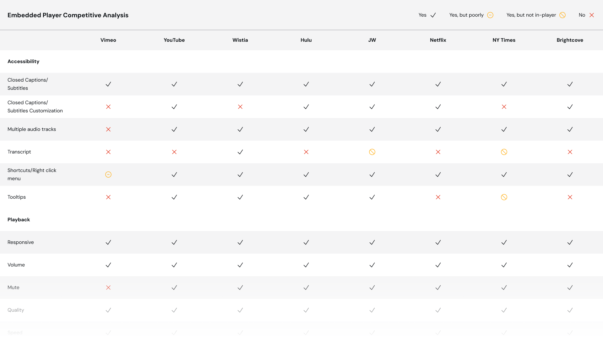 The team and I conducted a comprehensive accessibility audit, which gave us a clear roadmap of the gaps we needed to close. I surveyed Vimeo employees and users to find out what was and wasn’t working. On the design side, I conducted a deep-dive audit of the existing player and our design system, identifying every inconsistency. I created interactive prototypes to test usability with different users, ensuring our solutions were compliant and intuitive.